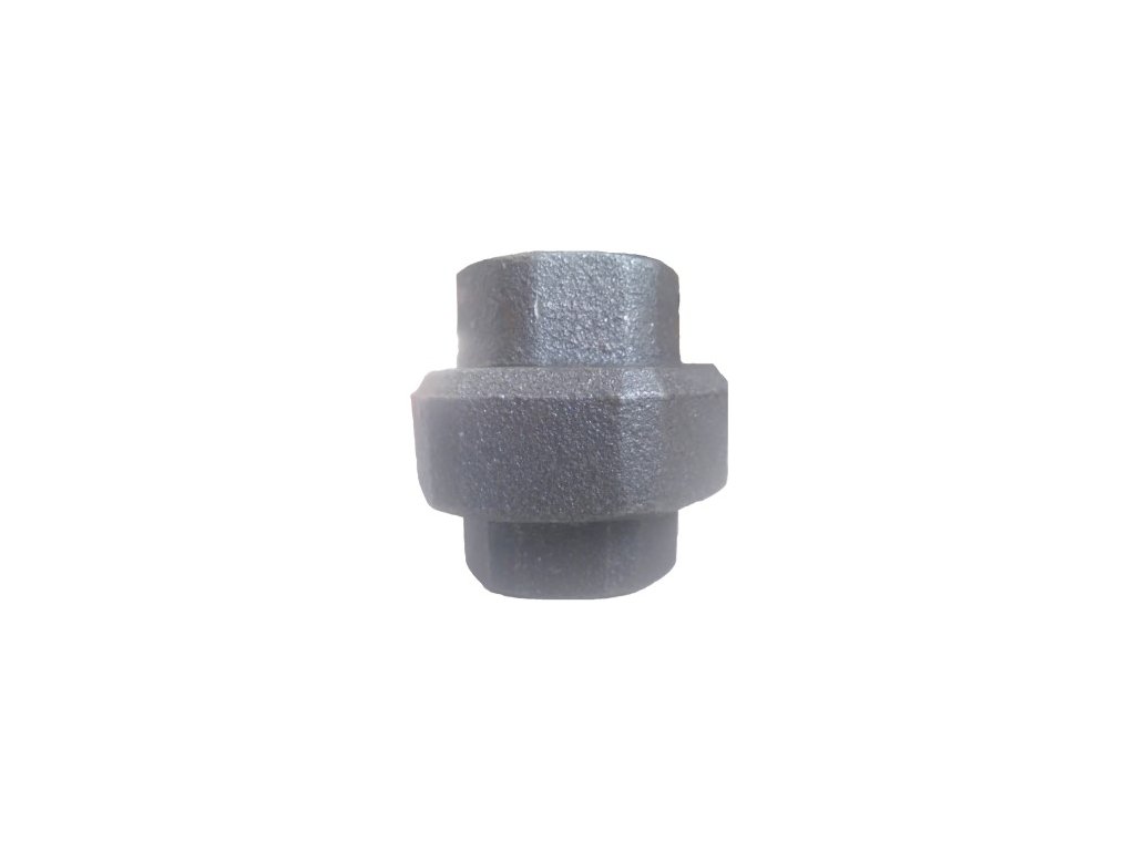 Závitová tvarovka z temperované litiny, druh – přímé šroubení s plochým sedlem s trubkovými závity vnitřní x vnitřní, černé provedení. Spojovací vnitřní závity Rc jsou kuželové pro spoje těsnící na závitech dle ISO 7-1, upevňovací závit matice G je válcový pro spoje netěsnící na závitech dle ISO 228-1. Skládá se ze tří dílů: 370 (přímý nátrubek) + 374 (převlečná matice) + 372 (opěrný nátrubek s vnitřním závitem).