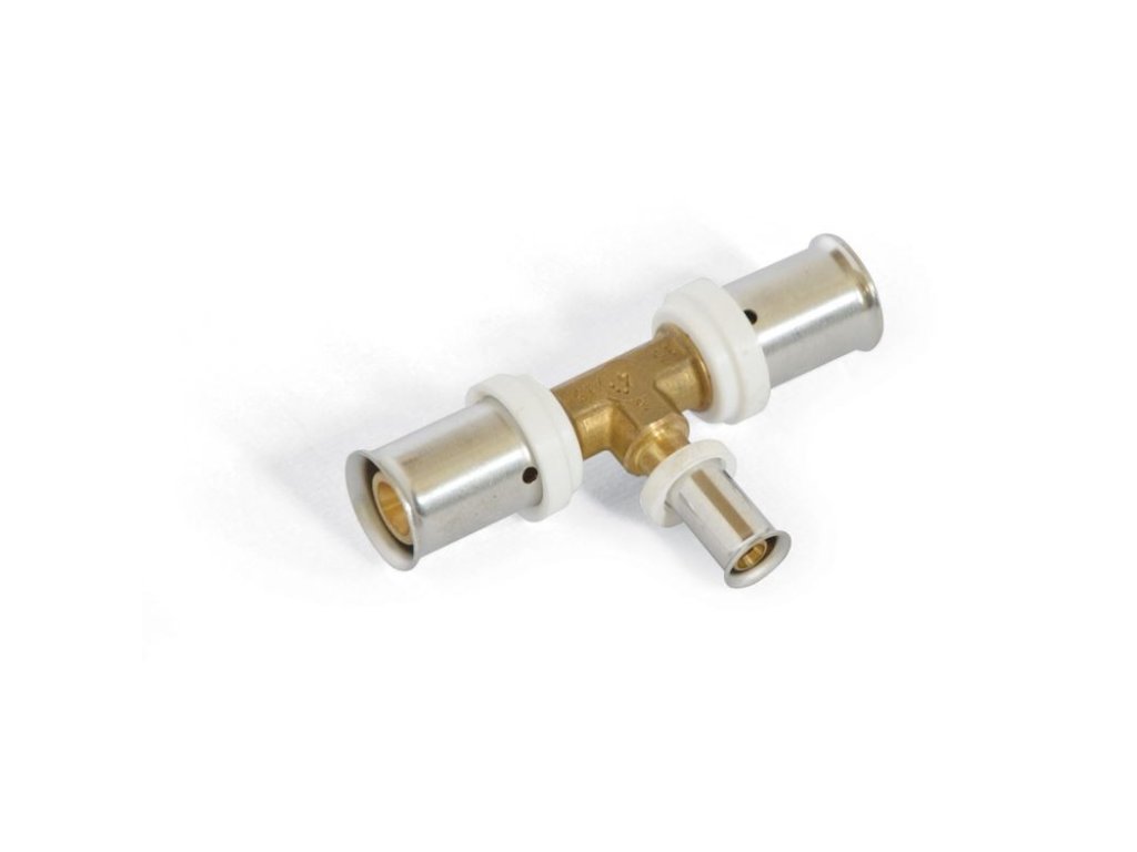 př. 16 × 2 mm, T-kus lisovaný ručními kleštěmi.